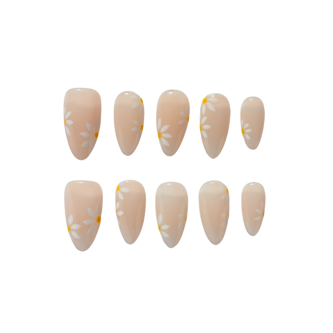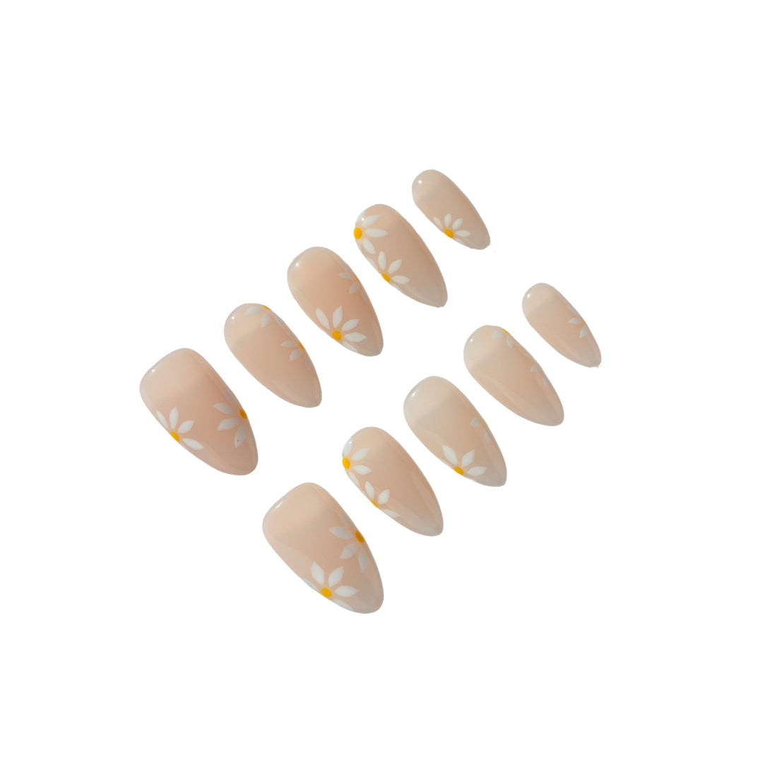 Embrace the fresh, breezy vibes of spring with these stunning beige press-on nails, adorned with delicate white floral prints. Designed to bring a soft, feminine touch to your look, these nails combine elegance with nature’s beauty for a refreshing, season-inspired manicure. Whether you're enjoying a sunny day out or adding a touch of floral elegance to any occasion, these press-ons offer a flawless, salon-quality finish in an easy-to-apply design. Perfect for anyone looking to brighten their style with a pop of floral charm!